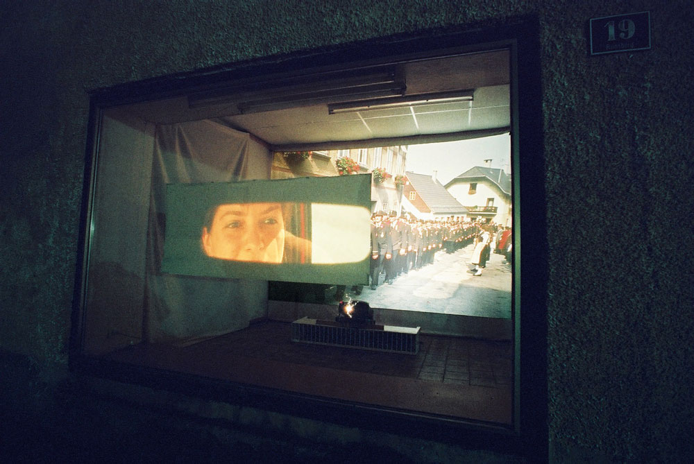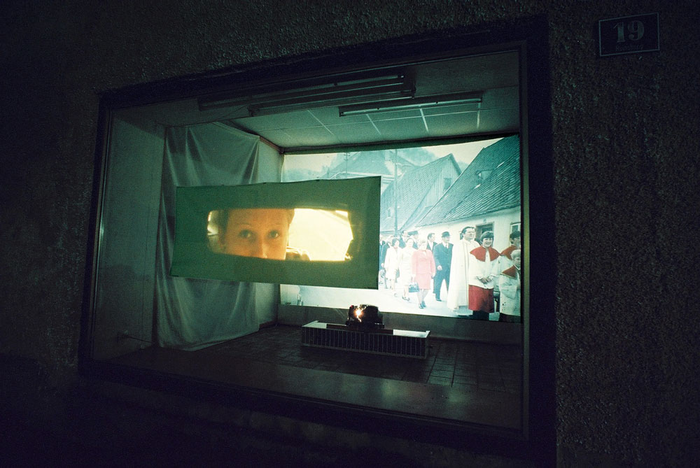 Der zweite Teil der Arbeit spielt im ehemaligen „Kaufhaus Gruber“ auf zwei Projektionsebenen:  direkt an der Auslagenscheibe zeigt eine aktuelle Fotoserie Reinsberger Autofahrer beim Blick in den Innenrückspiegel; in einem Abstand dahinter „ziehen“ großflächig die Prozessionsmotive der „Birkenbildstöcke“ vorbei und lösen, mittels Zeitgleichschaltung, als „Raum-Zeit-Fotomontage“ jeweils einen Moment der „Begegnung“ und „Konfrontation“ aus – es kommt zum automobilen Stillstand, wärend der Menschenzug die Engstelle am Kirchenplatz passiert und den Außenseiter registriert.
