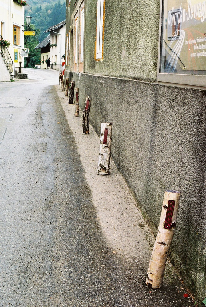 Die Arbeit beschäftigt sich mit Konfrontationsdynamiken innerhalb dorfgesellschaftlicher Begegnungsebenen. Anhand des Prozessionsweges sollen diese Ordnungssysteme aufgezeigt werden: mobil zelebrierte Anlässe, wie kirchliche Prozessionen und diverse Umzüge, folgen im Gegensatz zum gemeinsamen Fortschreiten starren Strukturen , die ihre unmittelbare Präsenz zum Teil in „festverankerter“ Form aufweisen: am Straßenrand rhythmisch gesetzte Rundrohrlöcher sind für die einmal jährlich stattfindende Frohnleichnahmsprozession vorgesehen, bei der sie mit jungen Birkenbäumchen bestückt werden.